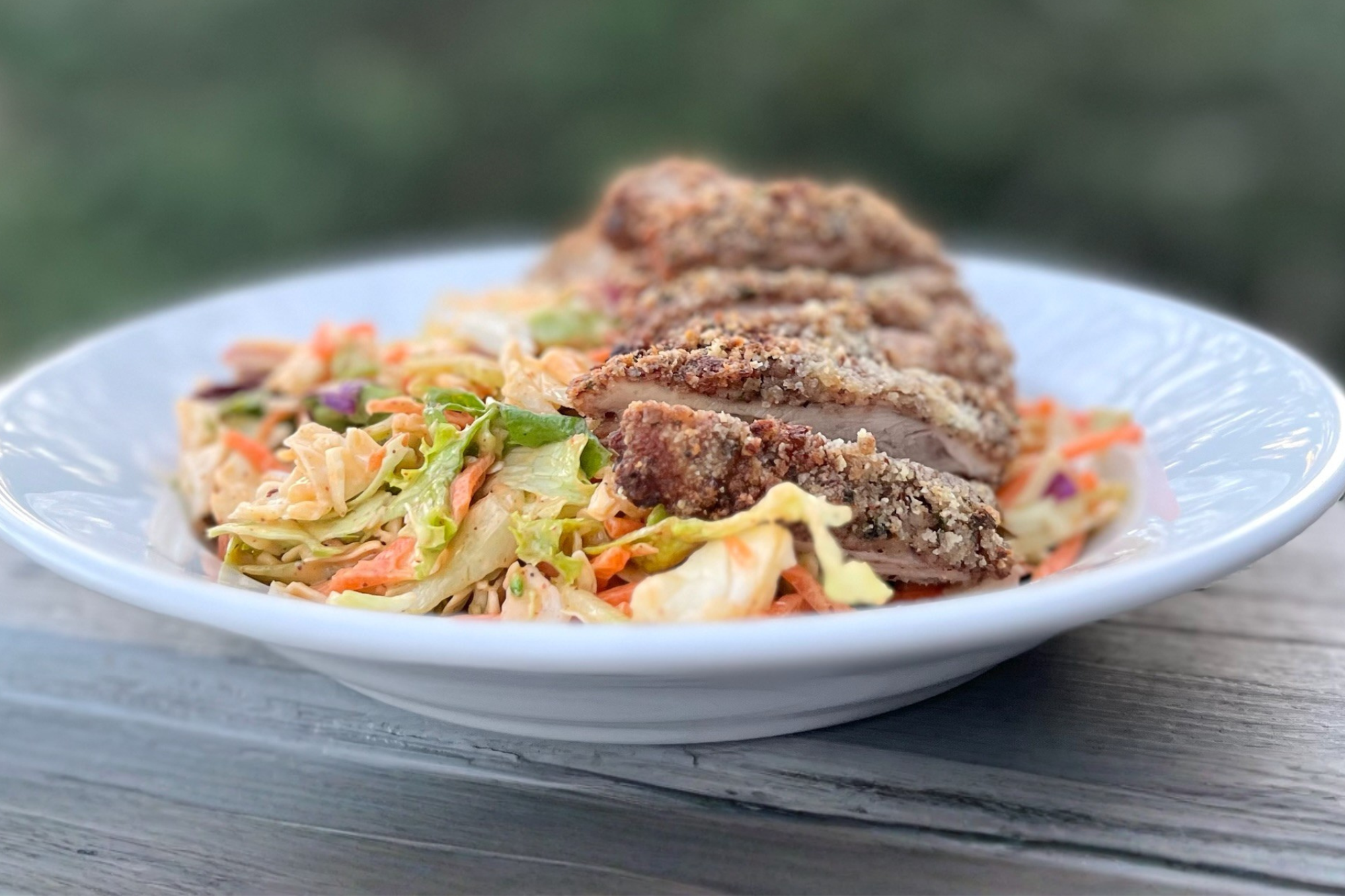 Tender chicken coated in a crunchy pecan crust, baked until golden. Naturally anti-inflammatory and packed with flavor.